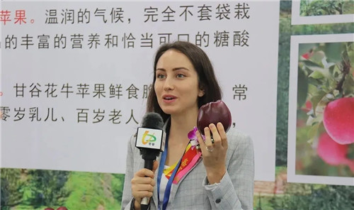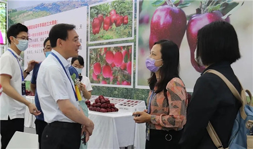 副縣長杜興為廣州市商務(wù)局會(huì)展處副處長、廣州商務(wù)會(huì)展促進(jìn)服務(wù)中心副主任陳建莎介紹甘谷蘋果