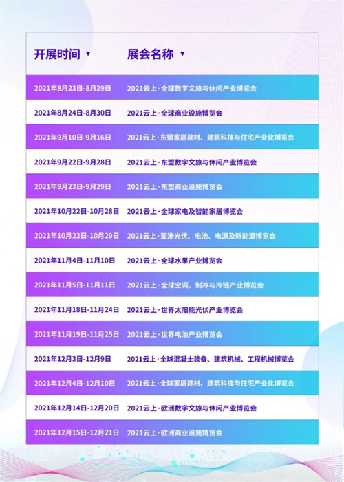 2021年,是“十四五”規(guī)劃開局之年,也是廣東省貫徹落實國務(wù)院常務(wù)會議“支持企業(yè)網(wǎng)上洽談、網(wǎng)上辦展,主動抓訂單、促合作”政策,鼓勵企業(yè)利用線上展覽開拓多元化國際市場,拓展對外貿(mào)易線上渠道“內(nèi)外兼修”,重磅推出“粵貿(mào)全球”線上展覽平臺的一年。