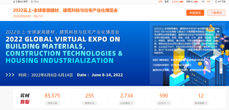 值得一提的是,2022云上·全球家居建材、建筑科技與住宅產(chǎn)業(yè)化博覽會在云展動力平臺數(shù)字技術(shù)的加持下,采購商只需在電腦進入云展動力平臺網(wǎng)頁或是手機上打開云展動力app,即可實時瀏覽、觀看企業(yè)信息、產(chǎn)品詳情、工廠實景等,還可以實時觀看、回放企業(yè)直播、全面了解企業(yè)實力。